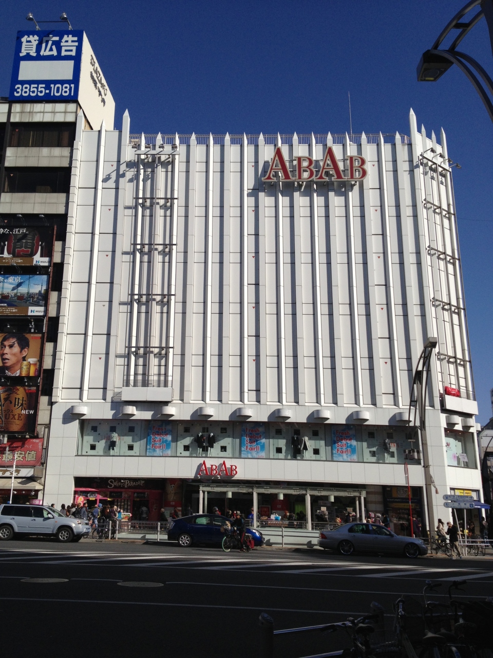 不忍池を散歩して大通りを上野駅の方に行こうとしたら,白いビルが目に飛び込んできました。アブアブは、若い女性向けの、ファッションビルです。トイレも圧倒的に女性用の方が数が多いです。6階にユニクロが入っています。