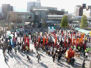 甲府駅の北口の武将が集まっていて、この日は信玄公祭りの武者行列の日でした。
