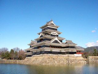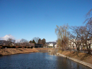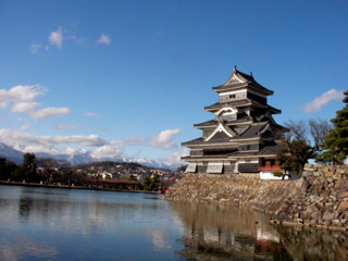 湧水のある街を通って、松本城のお堀を渡って、戦国時代そのままの天守が残っている松本城の公園に着きました。内堀越しに北アルプスが見えていますが、雪雲がかかっていて常念岳のあたりは良く見えません。天守閣に上る時間はありませんが、以前行ったときは、急な階段を上った記憶があります。