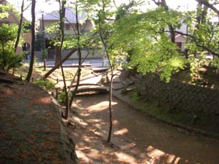 豪徳寺から少し東に行ったところに、石垣のある公園があり、看板を見ると世田谷城跡公園でした。公園として整備されているため、古い石垣はありませんが、二つの小山の間に空堀があり、隣の住宅地から豪徳寺まで続いていたようです。世田谷線で近くを通りながら、意外と知らないところがあるものです。