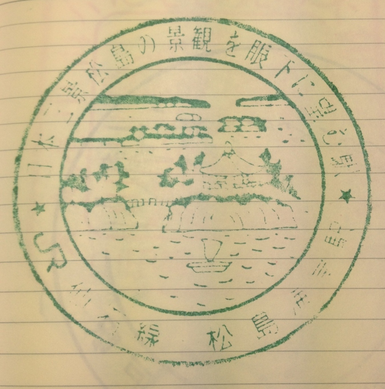 松島海岸駅のスタンプには、「日本三景松島の景観を眼下に望む駅」と刻印されています。