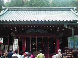 元箱根から海賊船で桃源台に戻りますが、箱根神社の鳥居が見えていて意外と近そうなので寄っていきます。湖岸に沿って進み、鳥居のところまで10分ほどですが、ここから参道を進み、右折して杉の大木に囲まれた階段を上った先に本殿があり、元箱根から結構離れていました。参拝して隣に九頭竜神社があり、こちらは縁結の祈願で、女性の列を作って参拝しています。「霊験あらたか」なら分かりますが、「パワースポット」と言われると有難くなさそうです。拝殿の前には「龍神水」の清水があり冷たくて美味しい水でした。