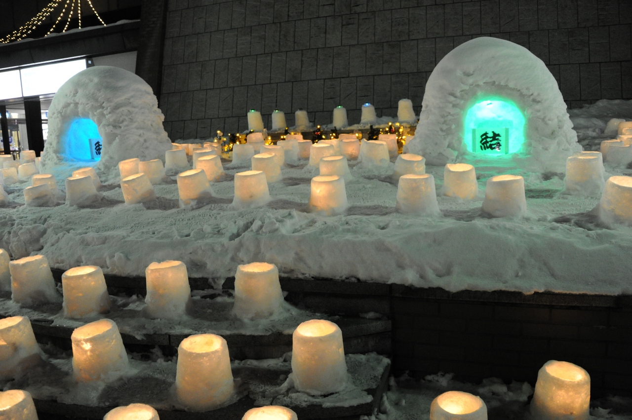 2月に訪れた時は駅前にかまくらのモニュメントがありました。
