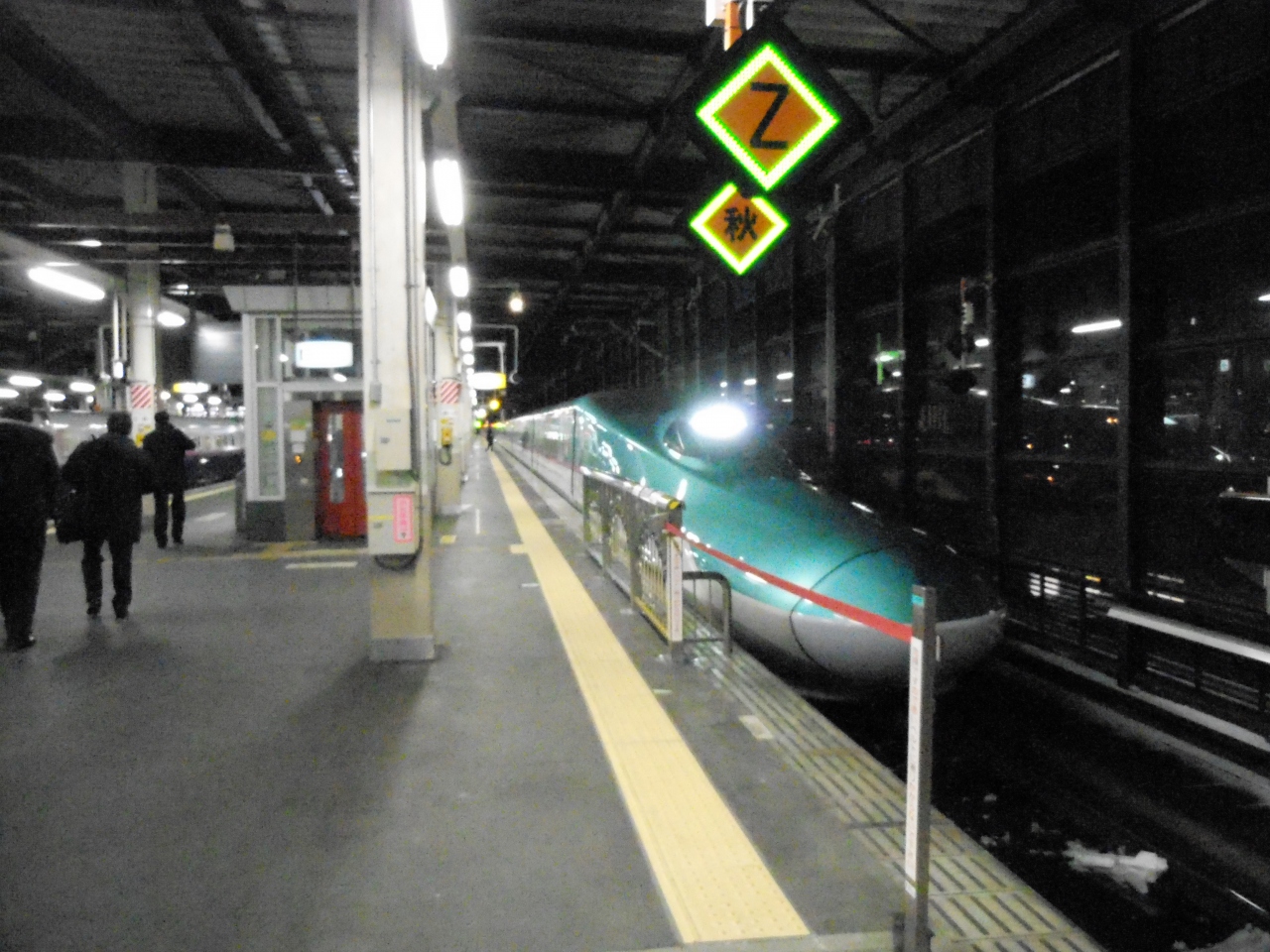 東北新幹線と秋田新幹線の分割・併合風景も鉄道ファンならずとも一見の価値があり、見物人がいます。とても機能的であっという間の作業でした。