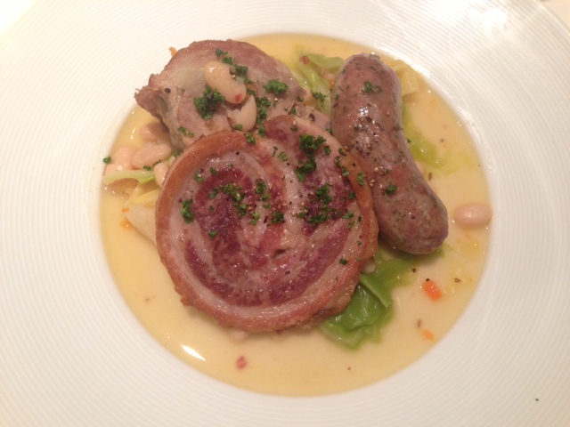 私はフォアグラのテリーヌ、白金豚の盛合せ、栗のムースを選びました。