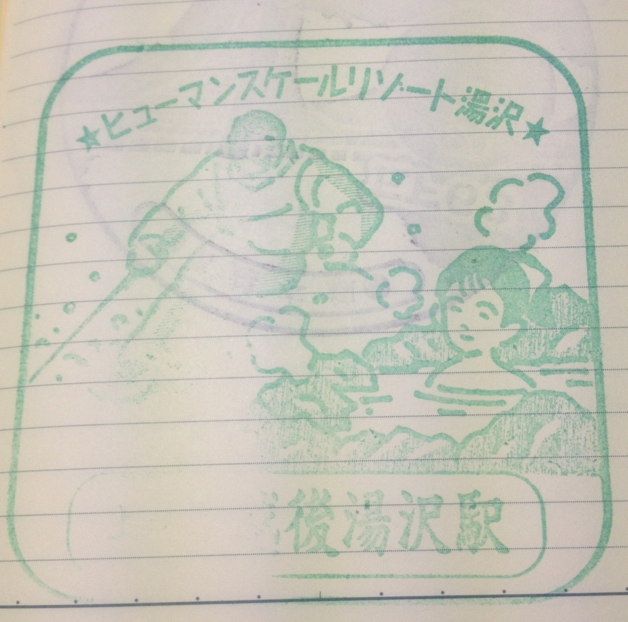 越後湯沢駅のスタンプには、「ヒューマンスケールリゾート湯沢」と刻印されています。