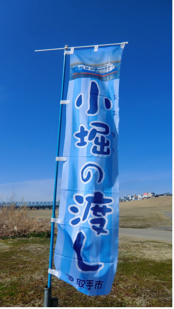小堀、河川敷の駐車場、取手駅近くの桟橋です。