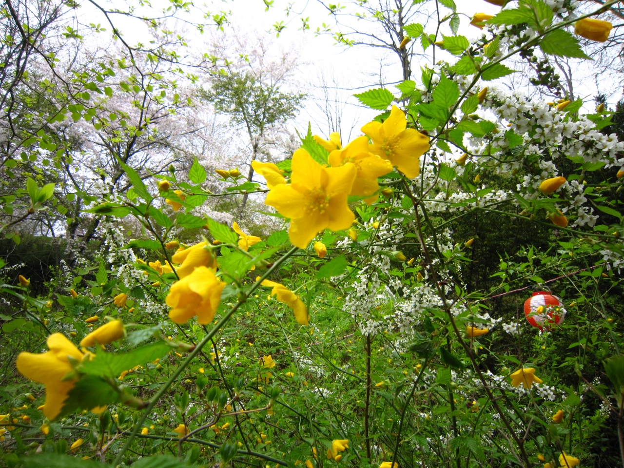 色とりどりの春の花が咲きほこり、終わりかけの桜も楽しめる隠れた名所という感じ。