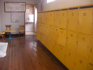 建物に入ると黄色の鍵のない箱ロッカーの並ぶ脱衣場で、古びた温泉の共同浴場の雰囲気です。浴室は薄暗く、広い湯船と、小さな湯船があり、広い方が33.1℃の元湯で、温水プールぐらいの温度で、アルカリ性でスベスベする感じがします。しばらく入って、小さな湯船に入ると、こちらは無色透明の熱めの温泉で、暖まってからまた冷たい源泉に入ります。