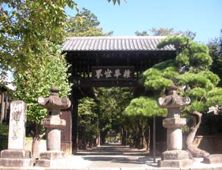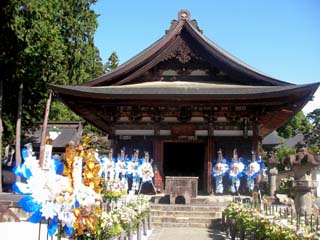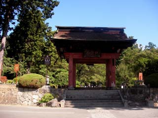 恵林寺でバスを降りて、山梨市営温泉花かげの湯に向かいますが、営業開始の10時まで少し時間があるので武田信玄の墓所のある恵林寺に寄っていきます。参道を進むと山門があり、広い庭園が広がっています。お堂に花が飾られていて葬儀の準備中で、奥の庭園は参拝料がかかるので今回は見送ります。