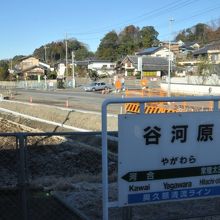 、茨城県常陸太田市磯部町七反田にある、JR東日本の水郡線(常陸太田支線)の駅です。単式ホーム1面1線の無人駅で、駅舎も待合室もなく、ベンチの上に屋根があるだけの簡易な駅です。駅の南側はどこまでも広がる田園地帯です。北側には人家が少々あります。