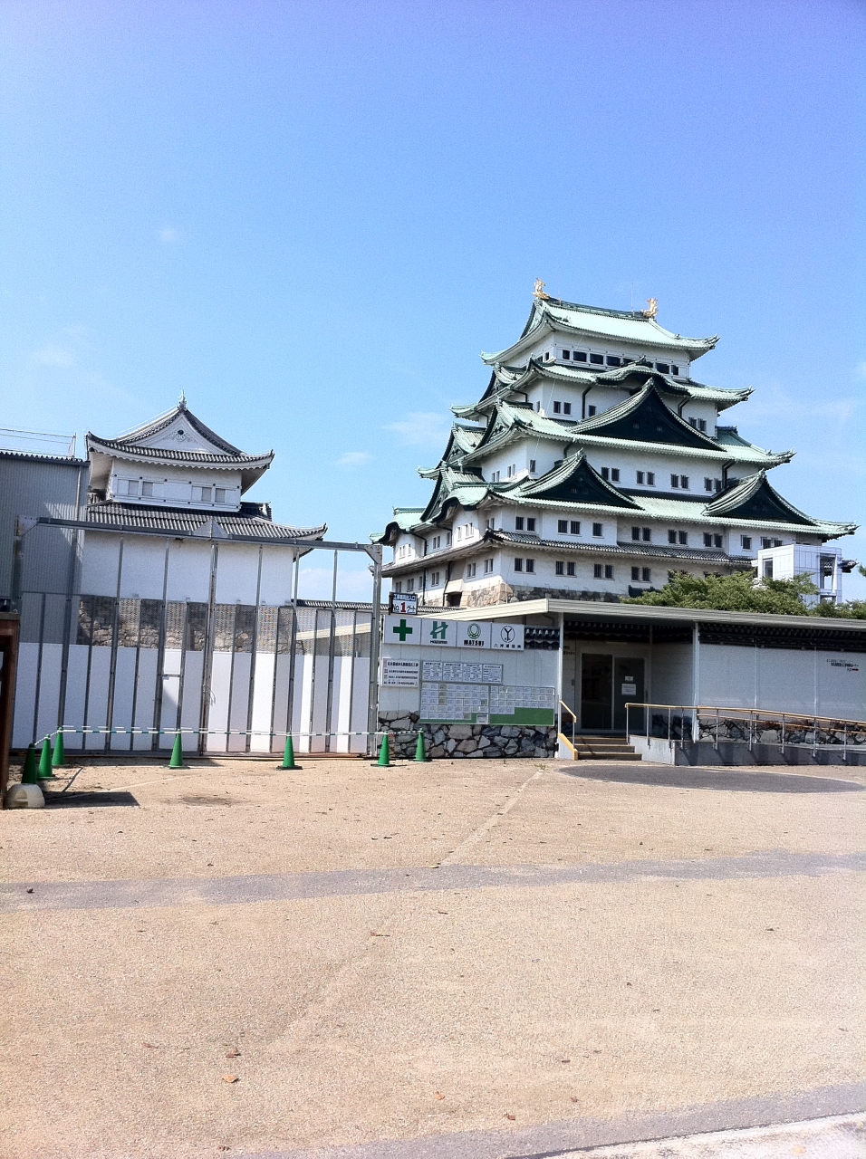 名古屋で名古屋城を見ずして何を見よう?必須アイテムですね。現在工事中ということでいささかふぜいに欠けるものの、それでも圧倒的迫力です。地元の子供たちが写生をしたり、名古屋の人に欠かせない場所なんだなと実感いたしました。