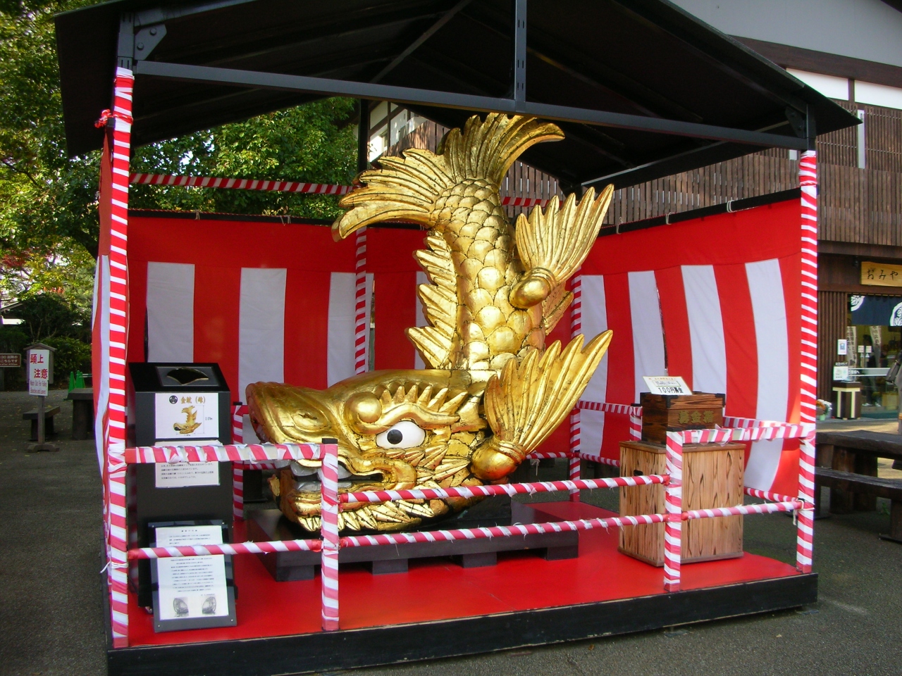 金の鯱鉾,その時は地上に降りていました!!! 大きさにびっくり. 演劇をしていた人がいました.