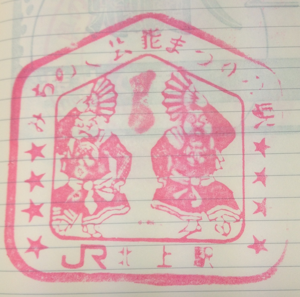 北上駅のスタンプには、「みちのく芸能まつりの駅」と刻印されています。