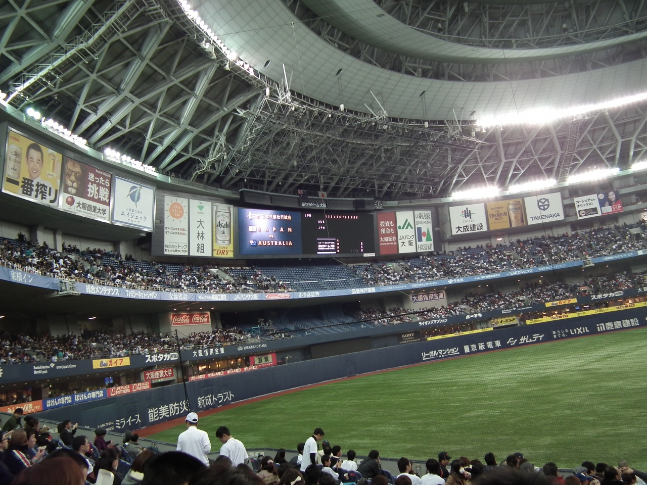 「日本 VS オーストラリア」、WBC強化試合を観戦しました。入口で入場者全員にWBC応援Tシャツが配られ、これだけでもお宝ものでした。早速Tシャツを着て応援しました。席は、4人一組の席を確保して家族で観戦しました。オーストラリアにはドーム球場は無いとのこと、日本では京セラドームが一番外観がでかく感じました。試合の結果は、相川の逆転スリーランで勝利しましたが試合内容は良くなかったです。やはり寄り合い所帯の感が拭えず、纏まるにはもう少し時間がかかるように感じました。