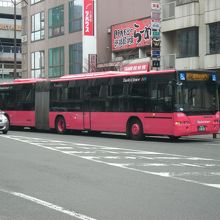 外にでると、紅い細長い全長18mあるというバスが走っていました。学生が多いと思ったら慶応キャンバスの最寄駅。このバスも慶応行き。乗ってみたいですね(本厚木でも見ました)。