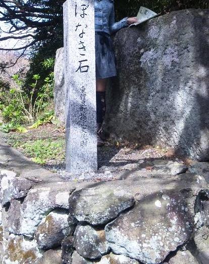 江戸城の修築工事の際に使おうとした石で、この石は重すぎて海辺まで降ろすことが出来ずに放置されたため、運搬人が「ぼやい」たとか石が泣いたとかで名付けられたそうです。