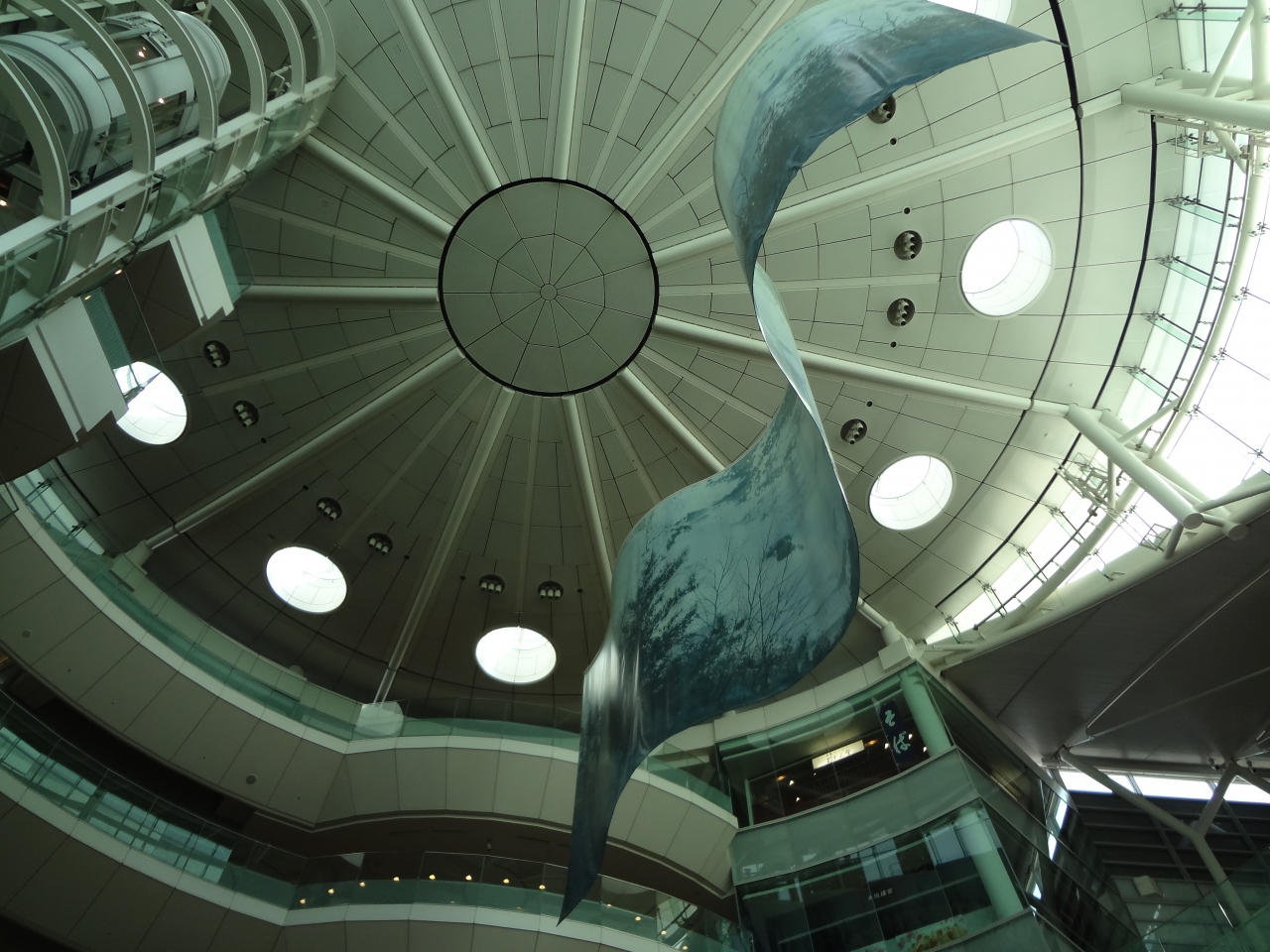 ANAを中心としたターミナルビルです。京浜急行やモノレールを降りて空港内に入ると、地下1階から5階まで吹き抜けになっていて、天井からは絵画のオブジェみたいなものが展示されていて、そこをエスカレーターで上がっていくのはなかなか圧巻です。夜は照明が落とされて、洗練されたショップも多く入っているので、何となくお洒落な雰囲気を楽しめます。