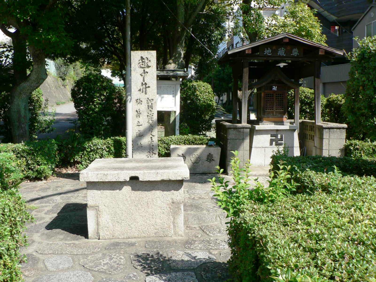 現在、細川越中守忠興邸の遺構として越中井が残され、ガラシャの辞世の句「散りぬべき 時知りてこそ 世の中の 花も花なれ 人も人なれ」