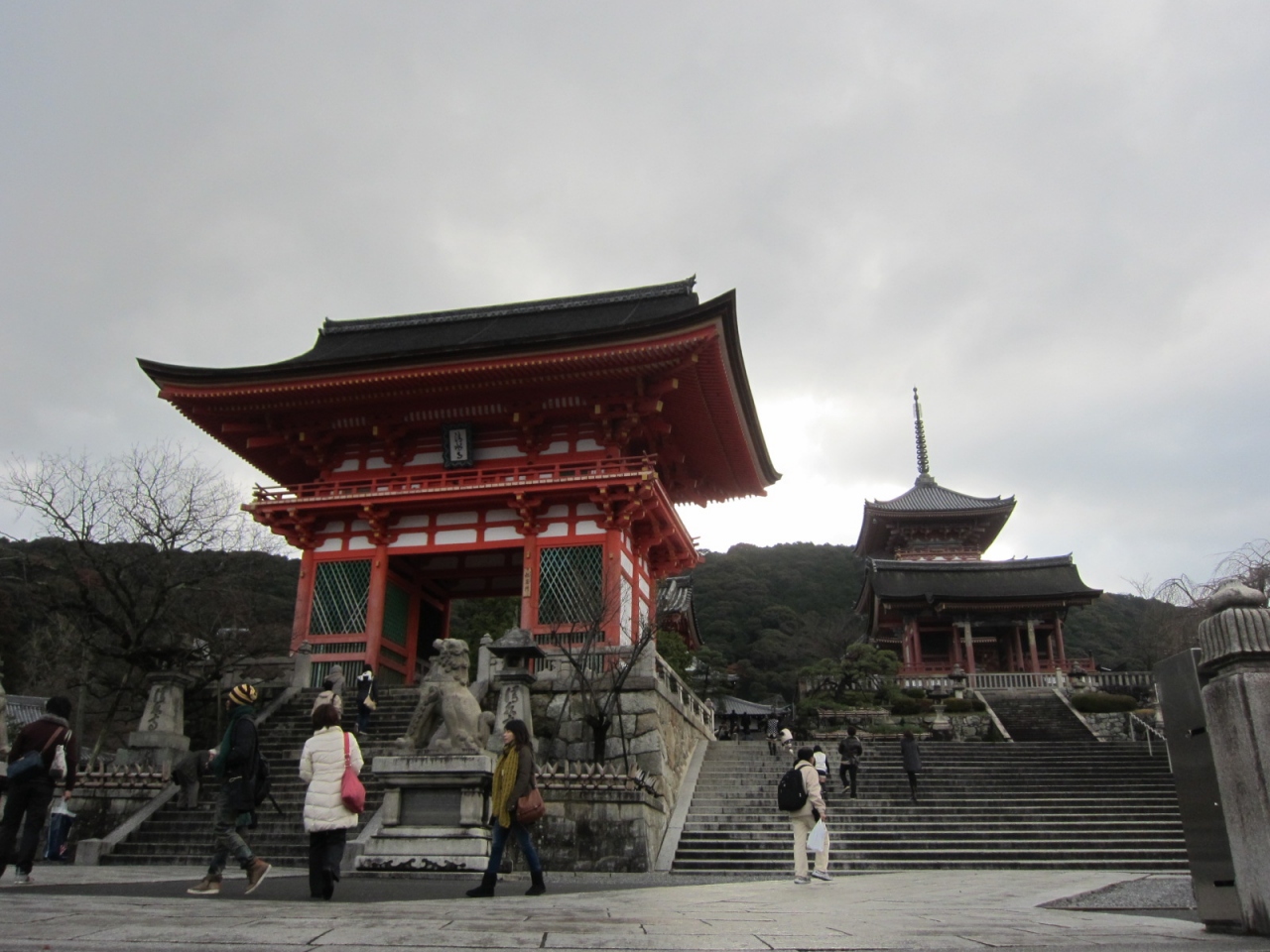 清水寺に着くとまず目に入るのは仁王門、正門、三重塔です。