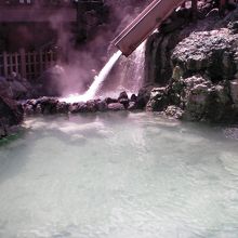 温泉街のど真ん中にもうもうと湯煙を上げています。