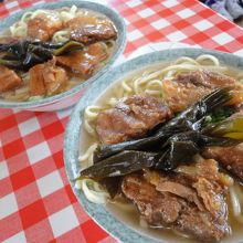 ソーキそばも、三枚肉そばもアツアツのだしに麺とお肉がたっぷり入っています。