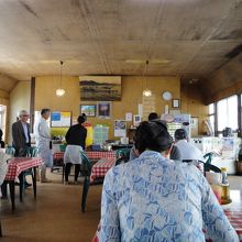 店内は明るく、赤のギンガムチェックのテーブルクロスに緑のプラスチックの椅子、いかにも南国の食堂っぽくていい雰囲気です。