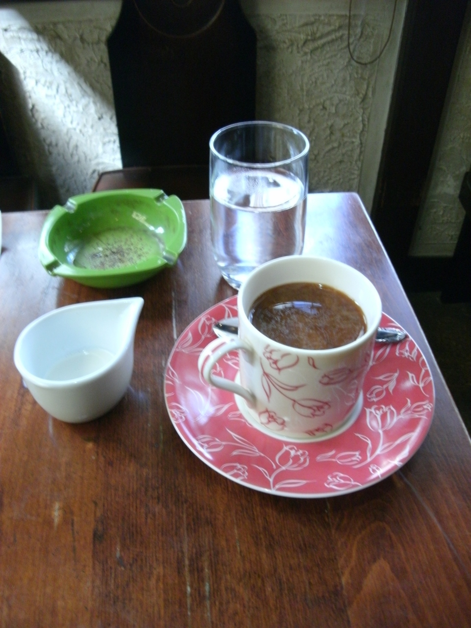 行ってきました。藤沢駅から数分の距離、昭和のイメージそのものの飲食街の入口角にそのお店がありました。店内も昭和を感じさせる。ランプ調の照明だが明るい。静かに音楽も流れる。カウンター向こうの老マスターが珈琲を淹れる。生ミルクが付いて昭和の香り。最近は横文字カフェが多のでこういう喫茶店もいいですね。周りをみるとお客さんは年配の方でした。