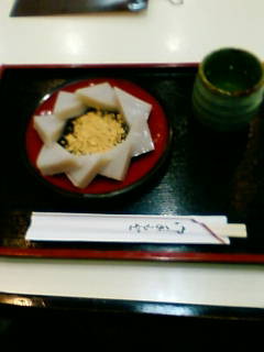 落ち着いた店内、出ましたくず餅・・なるほど納得。黒蜜との調和がGOODです。