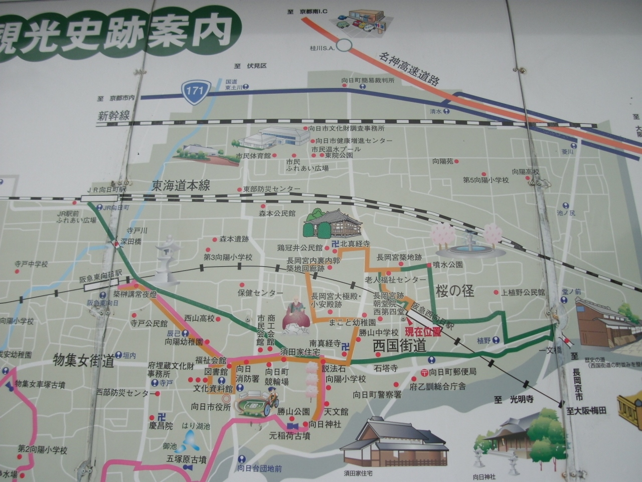 「西向日駅」は、京都府向日市上植野町南開にある、阪急電鉄京都本線の駅です。阪急電車の普通と準急しか止まりません。駅の周囲は住宅街で、タクシー待ちやバスもありません。駅のホームに沿って桜の木が多数植えられており、春には電車が花吹雪の中を走る様子を見ることがあります。駅の周囲、徒歩範囲に“長岡宮跡”の史跡があります。