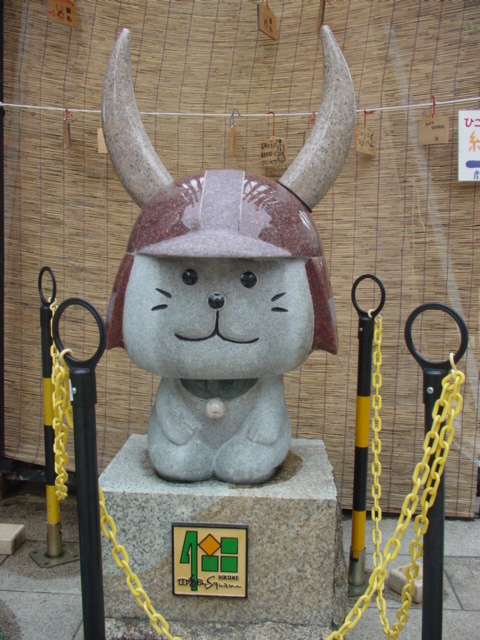 夢京橋キャッスルロードから続いてある四番町スクエアー。ひこにゃんなどキャラクターの充実度では夢京橋キャッスルロード以上のショッピングエリアです。ひこにゃんの石像や顔を出すとひこにゃんの顔に自分の顔という定番写真撮影場所もあります。