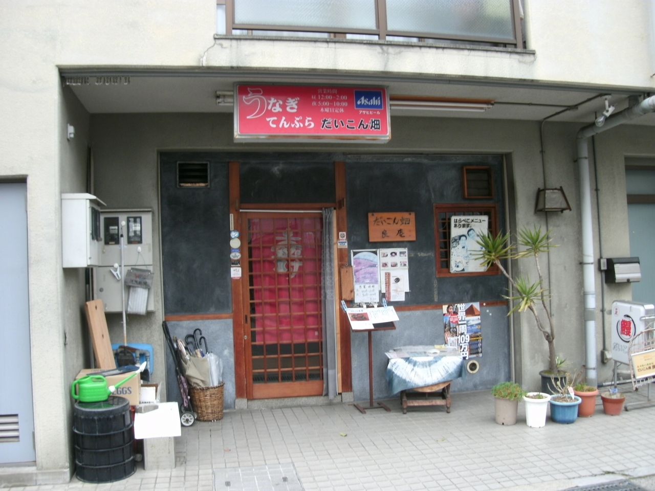 「だいこん畑 良庵」さんは、阪急東向日駅の東口を出て、東に二つ目の筋を北に入ったところにありますが、周囲は住宅街で少し分かりづらい感じです。うなぎと天ぷらが中心のお店です。お店は、靴を脱いで上がります。掘りごたつ式のテーブルとカウンター席があり、落ち着いて食事が出来ます。ランチに“上はらぺこ弁当1575円”をオーダーしました。待つこと10分あまり、鰻のタレや山椒類の入った容器が並べられたあと、重箱のような容器に入った料理が運ばれてきました。その内容は鰻丼、天麩羅、出汁巻き玉子、酢の物、汁物といったところで、天麩羅は海老、白身魚、野菜など7種を揚げたてでサービスしてくれます。うなぎは小さめでしたがこの値段ではやむを得ない。全体的に味、ボリューム、サービスとも十分満足できるものでした。