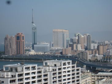 福岡市営地下鉄室見駅から徒歩20分の宕神社からヤフードームと福岡タワーの眺めは志賀島から見る眺めより近いため大きく見えました。