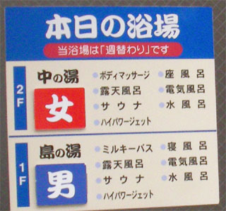 建物は新しく1階と2階が週変わりで男女が入れ替わるようです。100円返却式のロッカーで、かなり濃い黒湯の温泉は、4,5人は入れる大きな露天風呂と、L字型の水風呂で使われています。露天風呂は、屋根で覆われて外は見えませんが、底の近くから熱い黒湯が湧き出し、縁から溢れています。