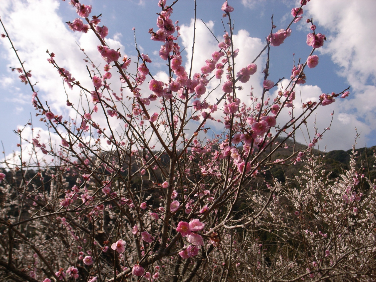 山なみに映える梅の花