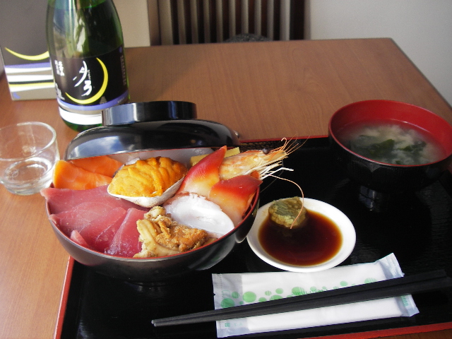 1Fのお店で日本酒やお弁当を買って2Fで食べることもできるし、2Fで海鮮料理を頼んでもOKです。
