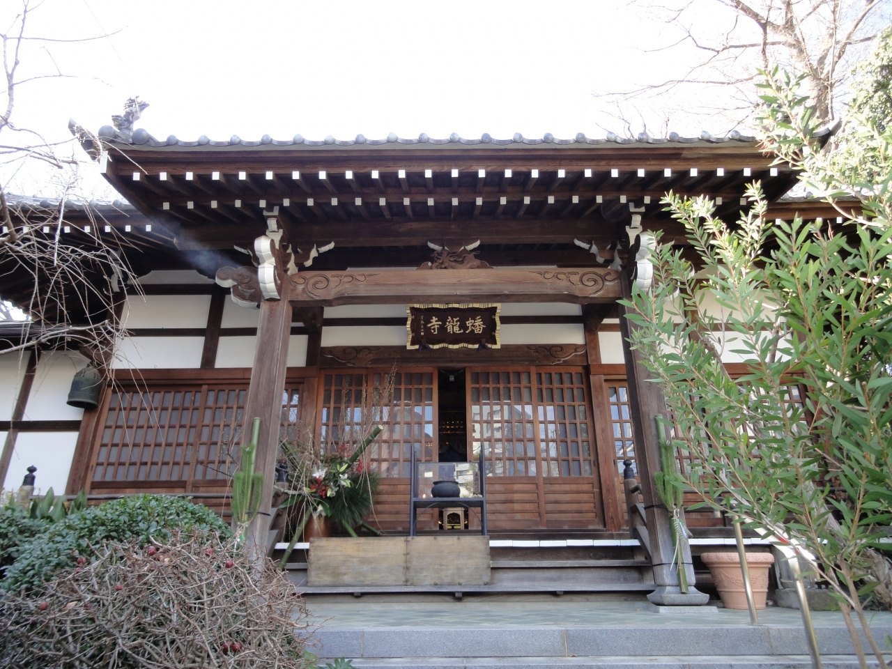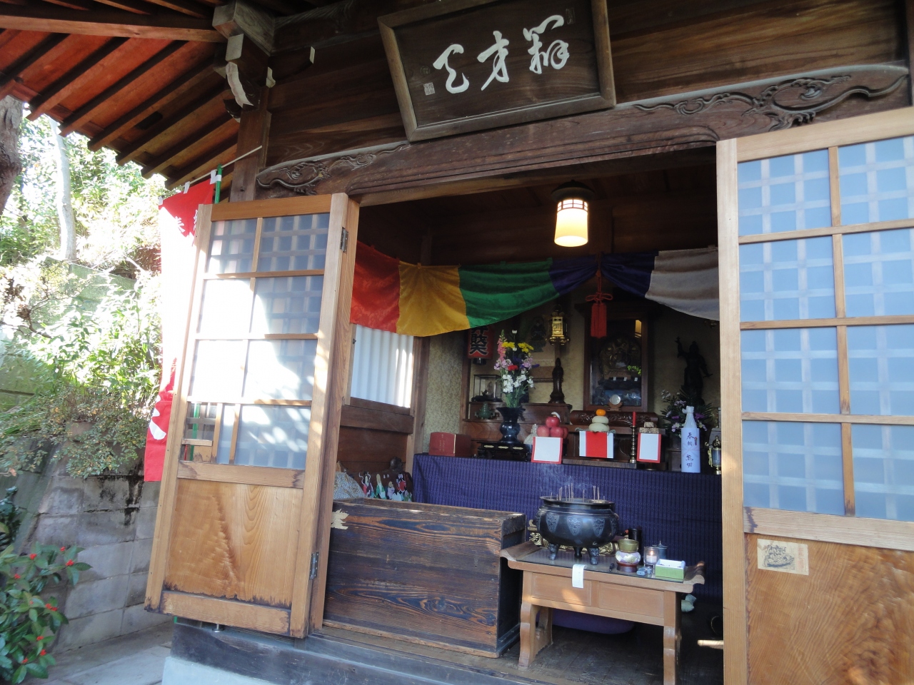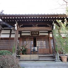 歩道橋の下を過ぎると次のお寺、お寺の看板が出ています。
