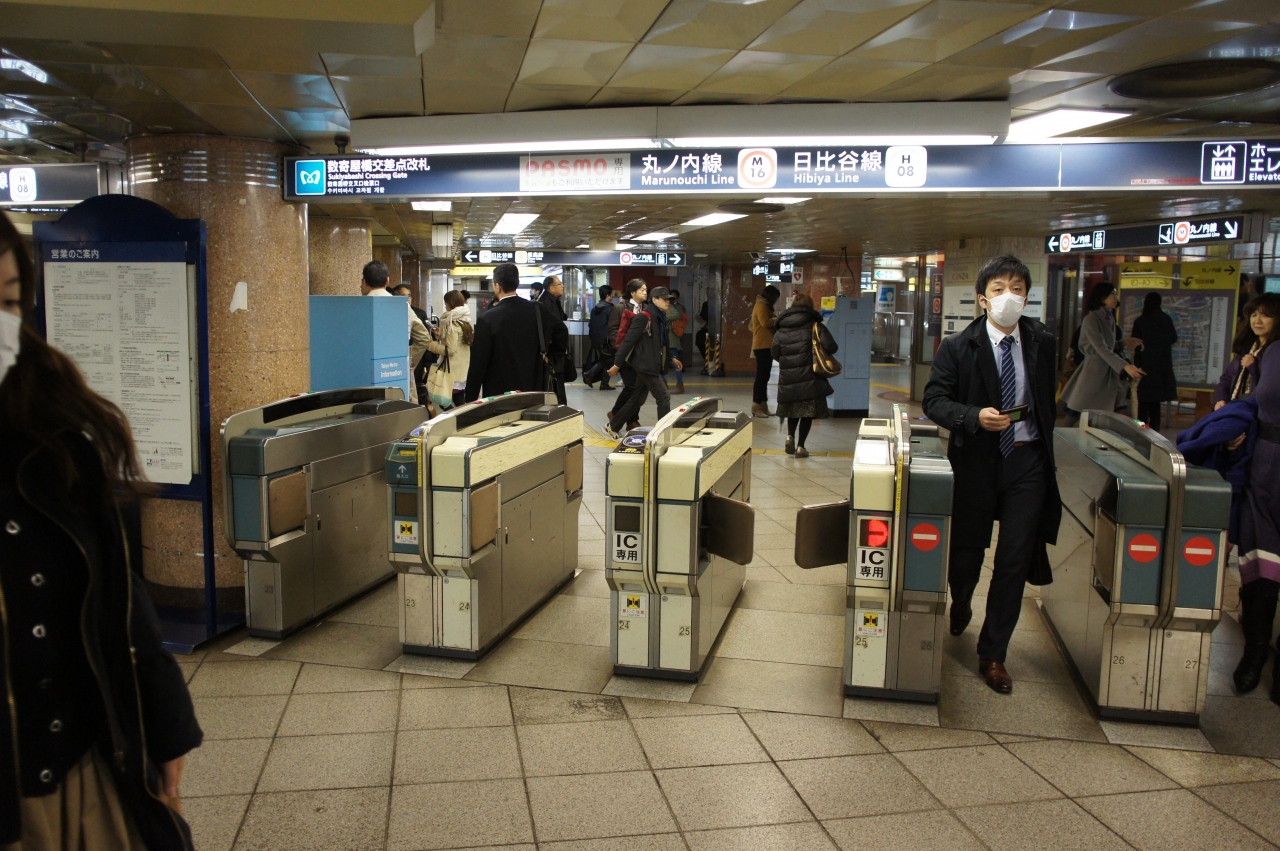 銀座駅は、日本最大の商業地、銀座の玄関口。銀座線・丸ノ内線・日比谷線の3つの路線が乗り入れています。地下道を歩くのも、街をよく知る人には便利なのでしょうが、私には複雑すぎてなかなか分からない。やっぱり、地上に出て、位置を確認しながら歩くのが落ち着きます。で、そのスタートは、数寄屋橋交差点。写真は、数寄屋橋の改札。C2、C4から地上に出ればOKです。