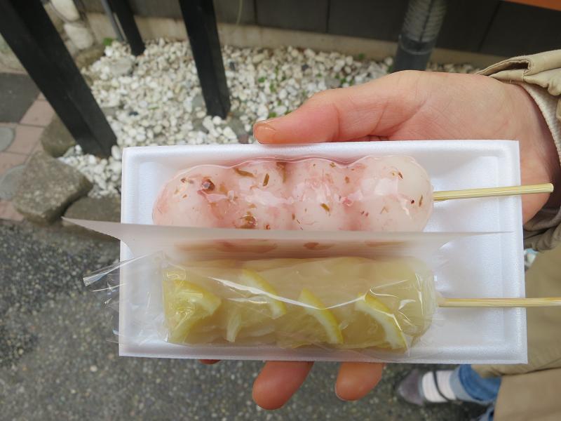 お団子の上にいろいろな餡を載せていますが、更に果物が載ってしまっているお団子もあります。