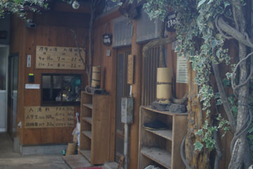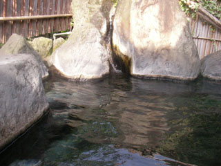 万年山から下って、国道210号線を天ヶ瀬温泉方面に少し戻り、コンビニの手前を北に入ったところにもうひとつの万年山温泉があります。この温泉は、朝の7時から営業していて、料金はなんと100円です。近所の人が仕事前に一風呂という感じで入っています。浴槽な岩を積んだ露天風呂が2つあり、ほど良い熱さの透明な温泉です。朝一番の天ヶ瀬温泉に入れなかったので、この温泉に入ってすっきりしました。