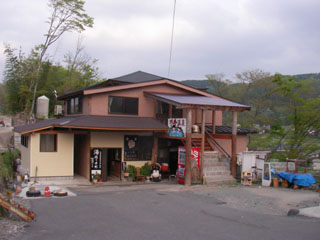 長湯温泉の温泉街をバイパスするトンネルを出た先の県道の脇に万寿温泉があります。ここは食堂と民宿を兼ねているようで、店を入ったところにいた人に湯巡り手形を見せたら、奥で調理している人に取り次いでくれました。最初の人は、食堂のお客さんだったようですいません。