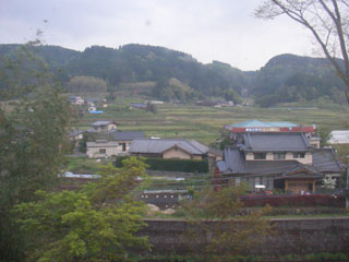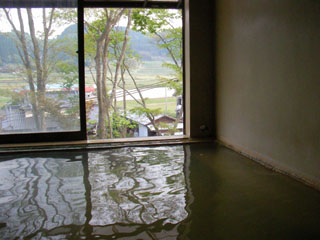 建物は、川に向かった崖の上に建っているので、浴室からののどかな田園風景が良く見えます。後で、崖の下の道を通ったら崖から温泉の排水が豪快に流れていていて、湯量が豊富なことが分かります。
