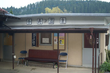 ながの湯から竹田方面から長湯温泉街に戻る三叉路を、温泉街とは反対の方向に少し進むと県道脇に千寿温泉があります。駐車場が手狭ですが、地元の人が中心の共同浴場のようです。受付では、おじいさんがテレビを付けたまま舟を漕いでいて、気持ちよさそうなので起すのもなんですが、声をかけて湯巡り券を見せます。シールを自分で剥がして、番号を告げると、「ゆっくり入っていってください」と声をかけられました。
