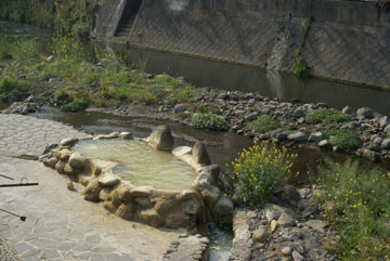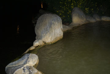 昼間は、対岸の旅館からまる見えのため入るには少し勇気が入りますが、夜間は周囲が暗く旅館の光をたよりに川原に下りて入ります。入ってみると湯加減が丁度良く、星空を見ながら気持ち良く浸かれます。この日は、長湯温泉の6箇所の違った温泉に入れて多いに満足しました。