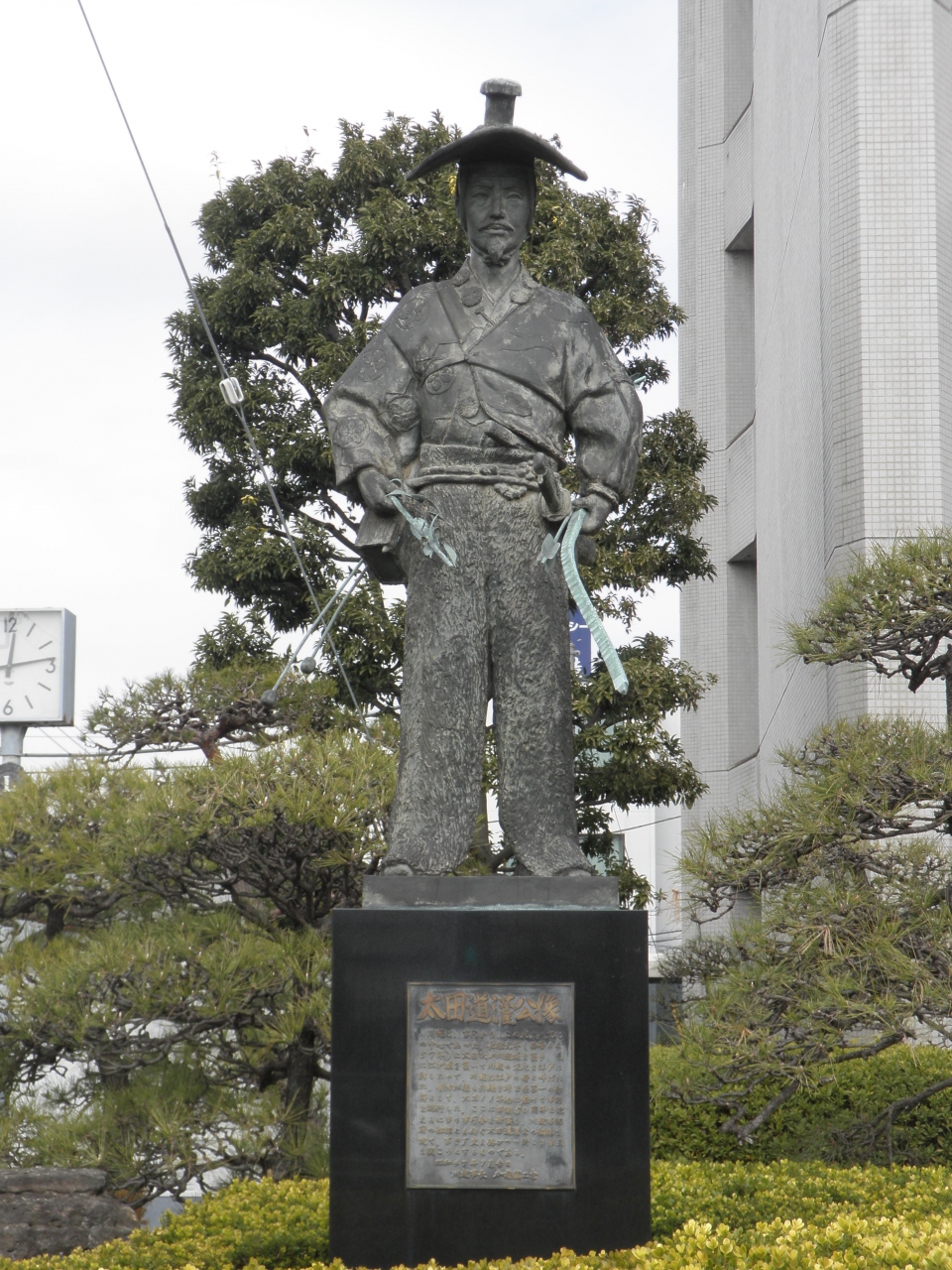 一番街の終わりの道と川越城本丸御殿を結ぶ道に川越市役所はあり、その役所の入り口に大田道灌(おおたどうかん)像はあります