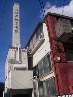 蒲田駅から池上線で一駅の蓮沼駅の近くにある温泉銭湯、駅の北口から左折して線路沿いの商店街を2分ぐらいで煙突が見えてきました。