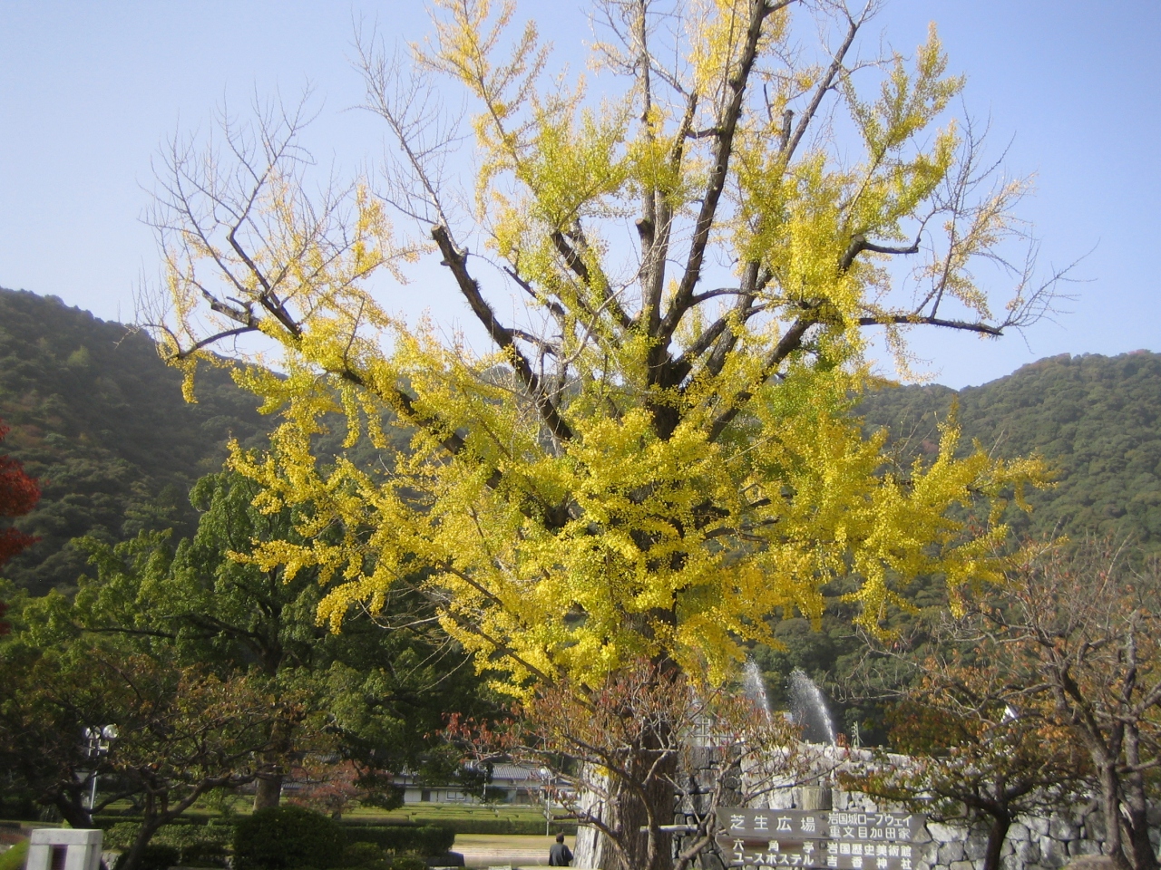 大きな銀杏の木があり、鮮やかに色付いていました。
