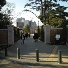 元町中華街駅と丘の上の観光地を結ぶというユニークな機能を持った公園です。公園の中にある建物からエレベーターとエスカレーターで地下鉄の駅と丘の上の地域の5階ほどの高さを結んでいます。さらにその建物の中に周辺のみどころの展示などがしてあります。