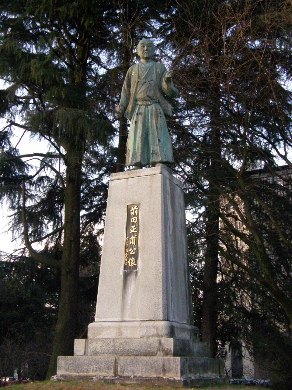 第二代富山藩主前田正甫(まえだ まさとし)の銅像があります。