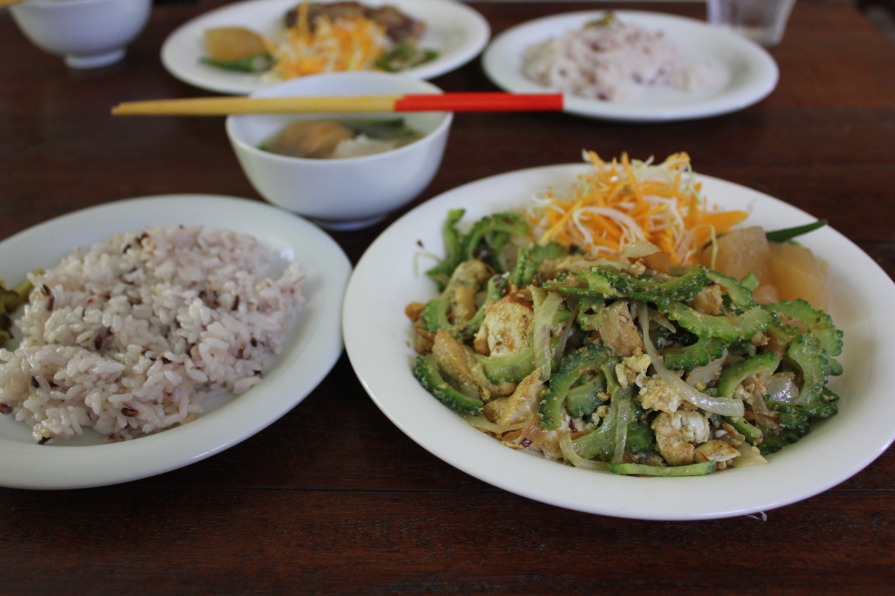私はゴーヤーチャンプルー定食(800円)を注文しました。